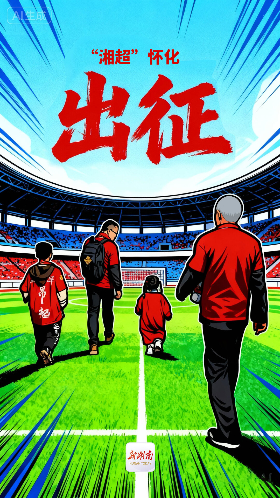 怀化球迷祖孙三代4人出征,前往怀化市体育中心足球场为怀化队加油。