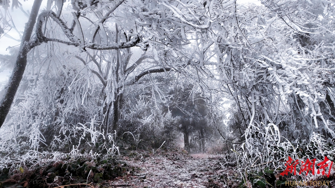 在南方的冬日,冰雪总是带着一丝珍贵的诗意。当大多数人还在羡慕北国的千里冰封时,会同县古称“会同八景之一”的神山——金龙山,正悄然上演着一场属于南方的冰雪童话。大面积雾凇如琼花绽放、似玉菊垂枝,将这座海拔1075米的山峰装点成银装素裹的童话世界,吸引游客来此地赴一场冬日限定的冰雪之约。
