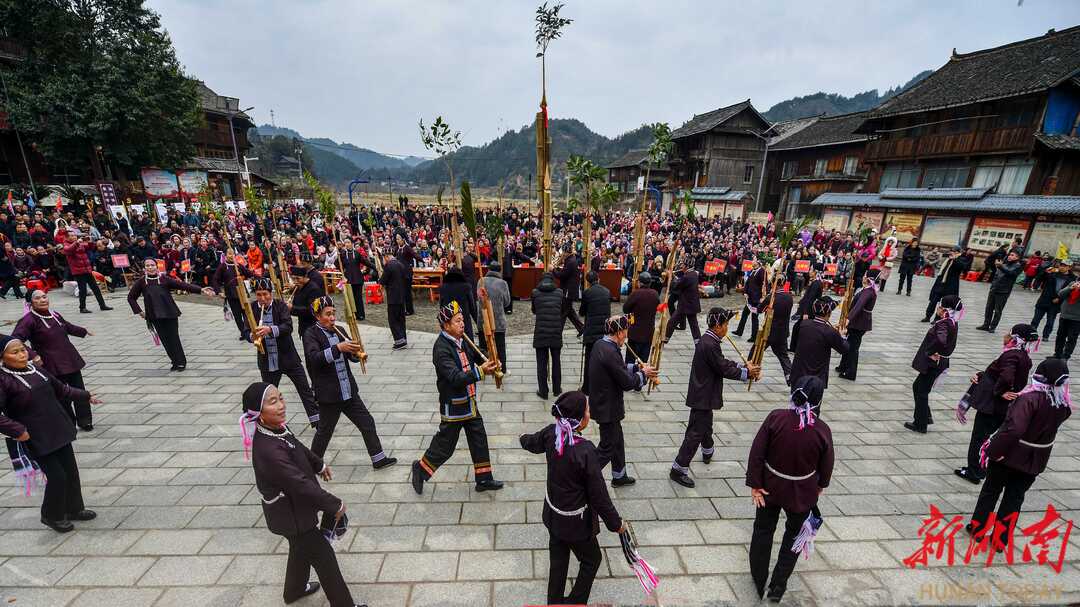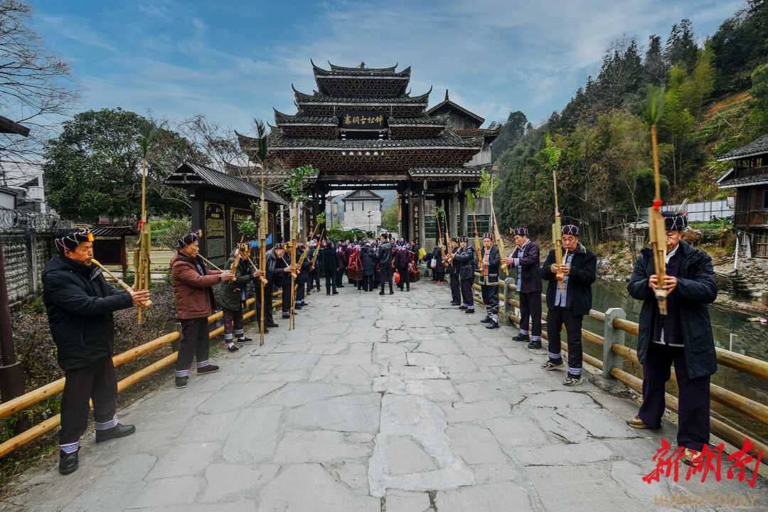 湖南日报·新湖南客户端1月25日讯(通讯员 王启友)1月24日,通道侗族自治县坪坦乡坪坦村迎来一年一度的侗年节。尽管天气严寒,现场却热情涌动。一大早,坪坦村的迎宾队伍便齐聚寨门,以悠扬的芦笙、喧腾的锣鼓、生动的拦门对歌和醇厚的美酒,热烈迎接四方来宾。