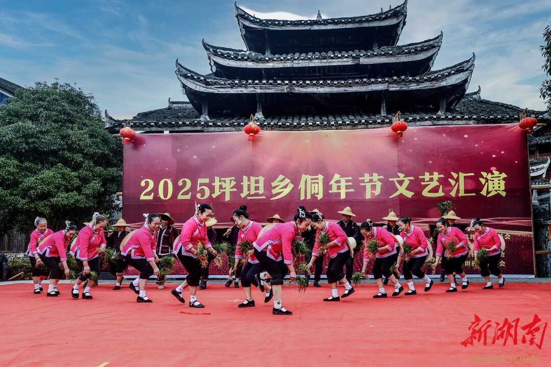 本次活动不仅汇聚了坪坦乡所辖16个行政村的文艺队伍,还吸引了来自广西三江侗族自治县林溪镇贯洞、美俗两村的代表队,湘桂侗胞携手共庆,情谊交融。活动以侗戏表演为主线,融汇哆吔、三句半等深受侗族群众喜爱的艺术形式。