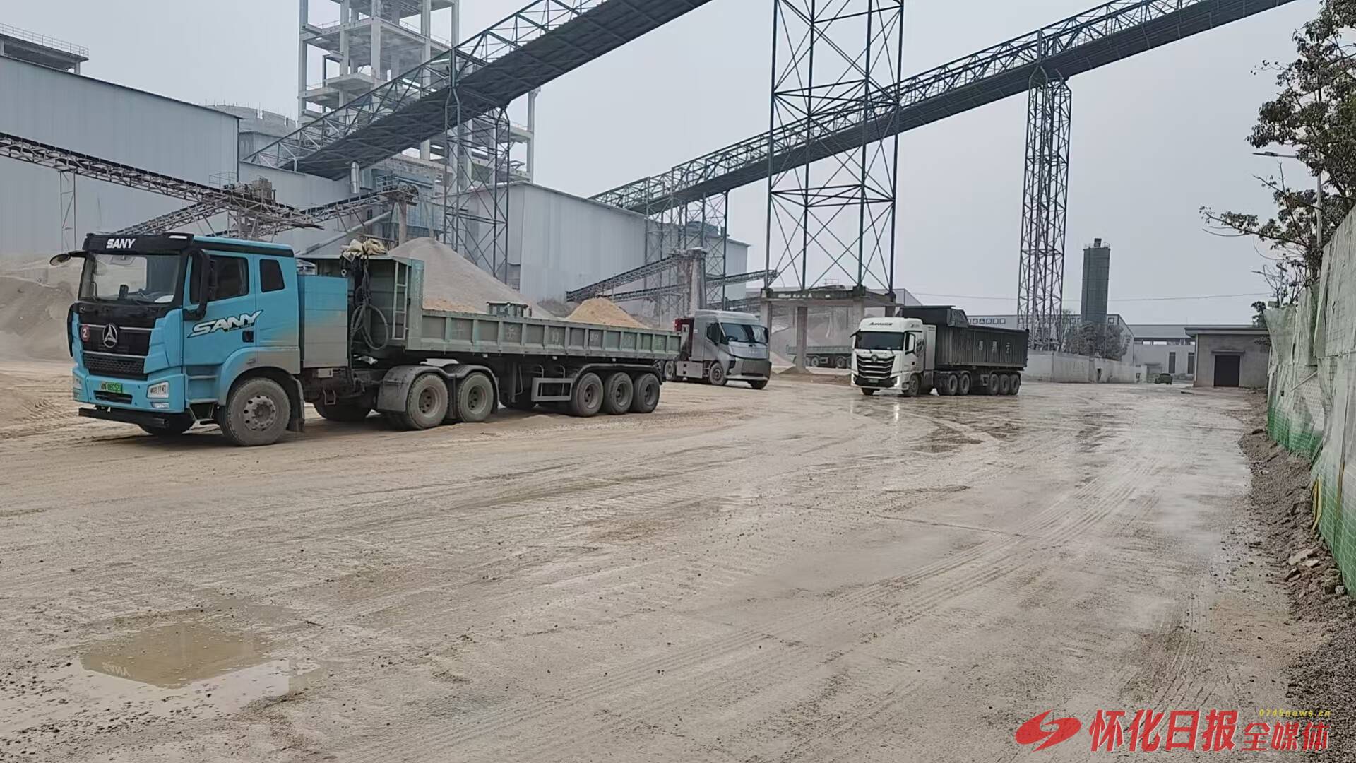 (在市财信融资担保有限责任公司赋能下,中方县顺达新材料有限公司享受到了实实在在的政策红利。图为该企业砂石出料运输现场。)