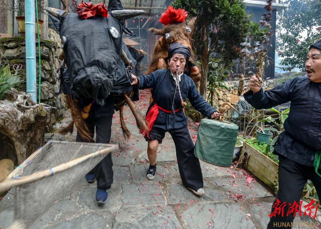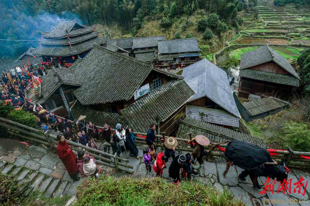 “春牛”在乡亲们的舞动下活灵活现,时而奔跑撒欢,时而憨态可掬,配合着诙谐幽默的劳动模仿表演,引得围观游客与村民阵阵欢笑,现场气氛热烈非凡。巡游队伍走村串寨,将春天的讯息和新年的祝福送到家家户户。最终,队伍汇集于寨子中央的鼓楼坪,众人围圈共舞,以最古朴的方式祈愿新的一年风调雨顺、五谷丰登、六畜兴旺。(王启友)