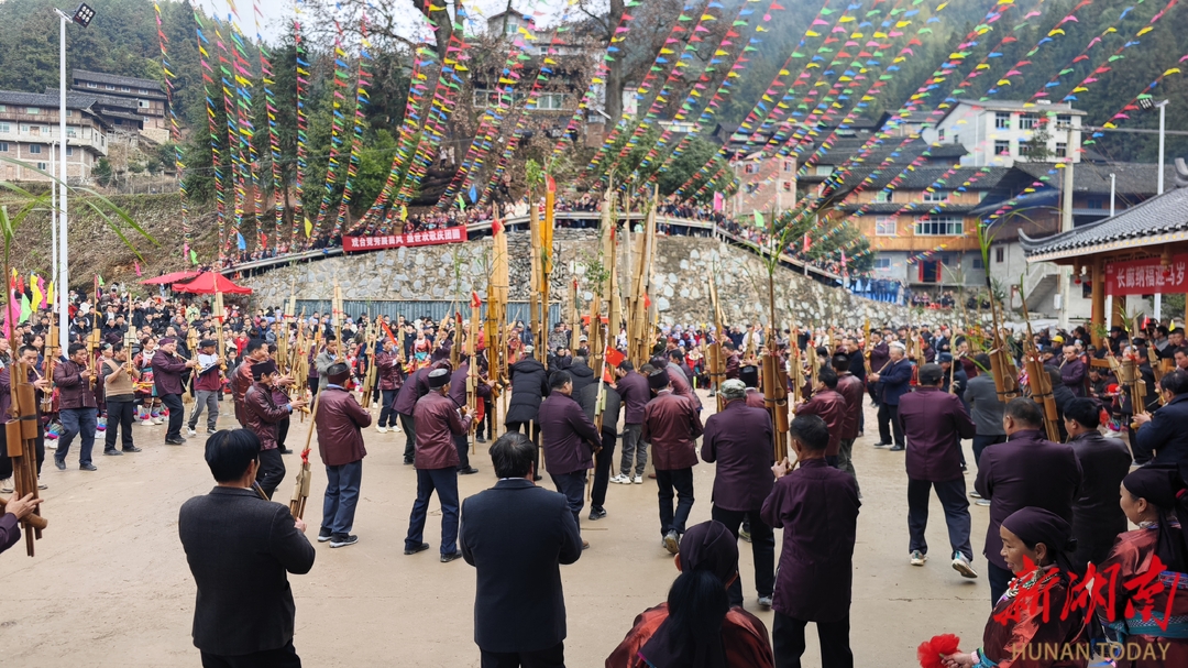 湖南日报·新湖南客户端2月19日讯(通讯员 王院儒 吴丹)锣鼓喧天辞旧岁,银花火树迎新春。正月初三,春意盎然。在通道侗族自治县大高坪苗族乡德高苗寨,一场以“民族团结一家亲·苗侗共庆中国年”为主题的新春联谊活动热闹上演。来自湘、桂、黔三省(区)十余个村寨的苗侗群众与各地游客齐聚一堂,以芦笙为媒、以歌舞会友,共同演绎了一场万人同欢的民俗盛宴。