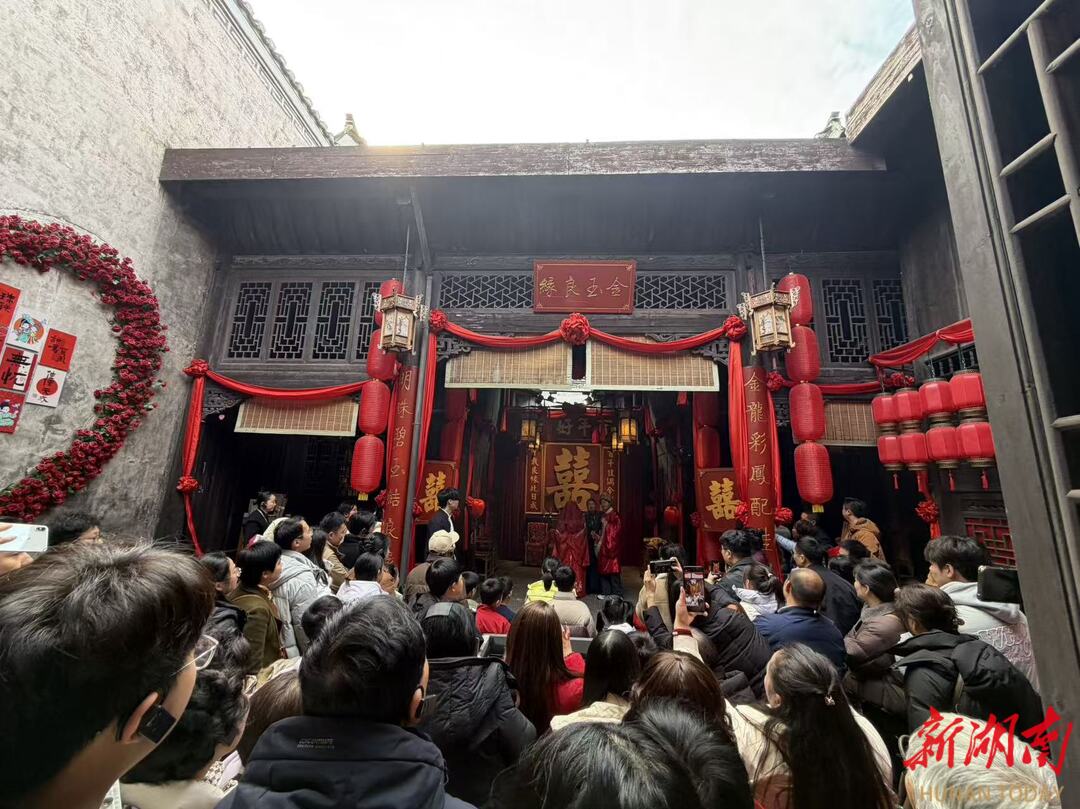 春节假期里,洪江古商城张灯结彩、年味十足。古韵街巷里洪商福宴、龙狮巡游轮番上演,实景演绎、沉浸式互动体验好戏连台,游客穿行在青砖黛瓦之间,逛古街、品年味、赏非遗、寻商韵,一步一景皆是烟火盛景,沉浸式感受千年古商城的厚重底蕴与新春活力。