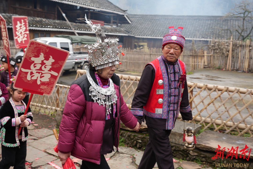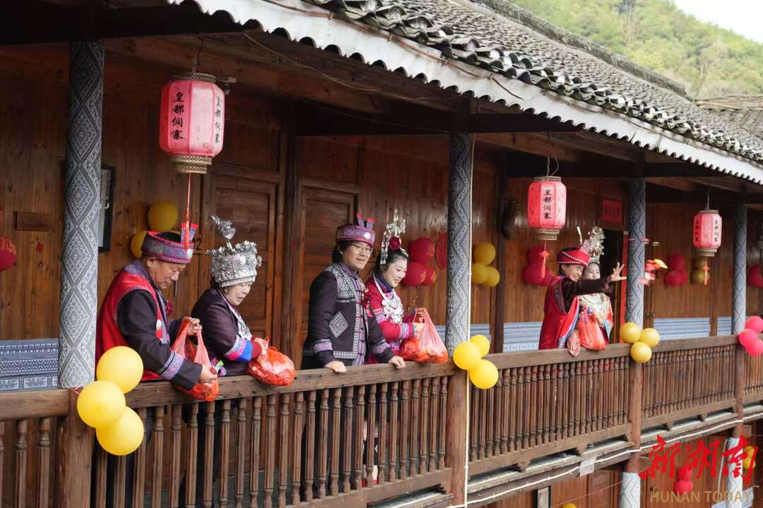 湖南日报·新湖南客户端2月20日讯(通讯员 吴祥淼 杨新鸿)2月19日,农历正月初三,一场原汁原味的“行歌坐夜·情定侗乡”侗族婚典实景演绎在湖南通道皇都侗文化村与芋头古侗寨之间精彩启幕。此次活动以“出嫁—成婚—回门”为主线,通过两寨联动、情景相融的方式,为游客呈现了一场沉浸式的民族婚俗盛宴。