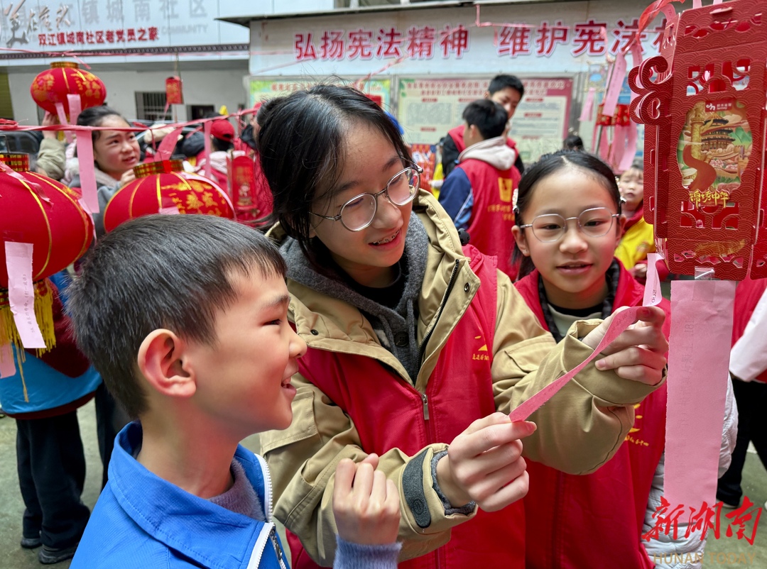 3月2日,元宵节前夕,通道侗族自治县阳光社会工作服务中心携手城南社区,开展“迎元宵 猜灯谜 ”主题活动,吸引辖区居民和孩子们踊跃参与,尽享谜底乐趣,共话节日温情。(湖南日报·新湖南客户端通讯员 陈俊宇 摄)